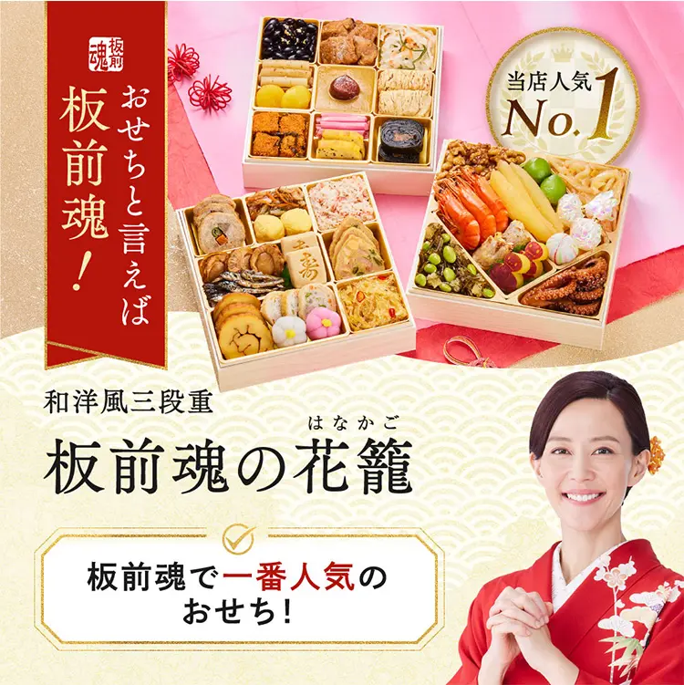 女優・木村佳乃さんとのタイアップでも有名な板前魂は、おせち専門店だからこそ出来るコストパフォーマンスの良さが自慢!