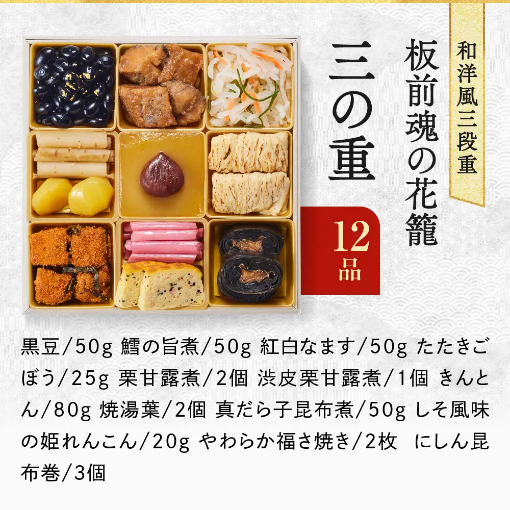 1番人気の「板前魂の花籠」は三段重おせちながら9,480円!